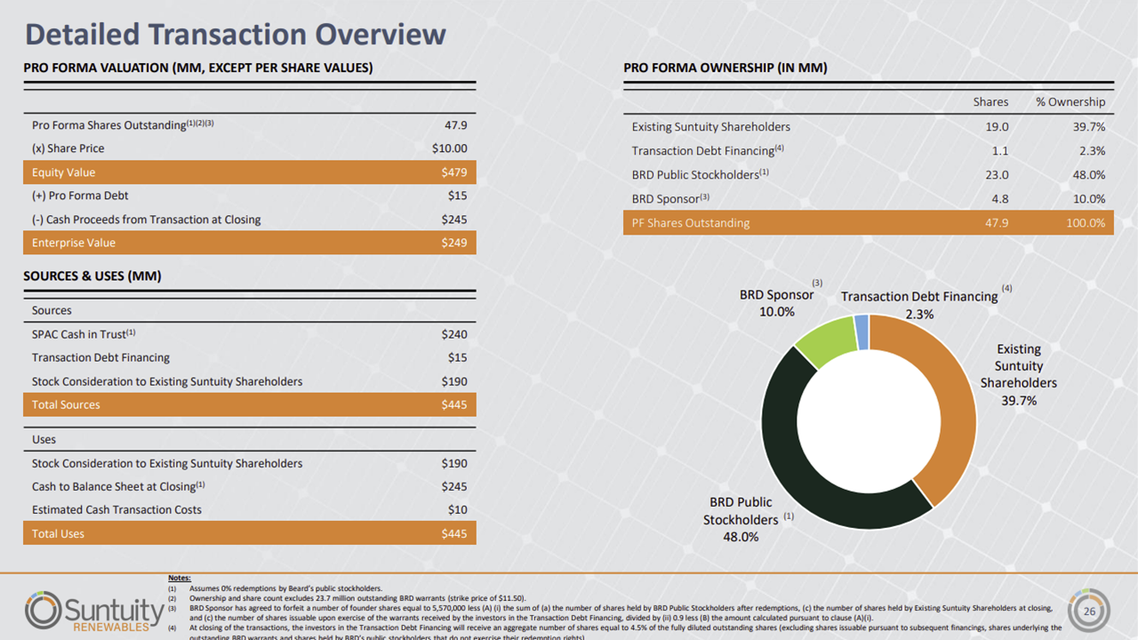 - Pursuant to the business combination agreement, Beard will acquire Suntuity for a pre-money equity value of $190 million.
