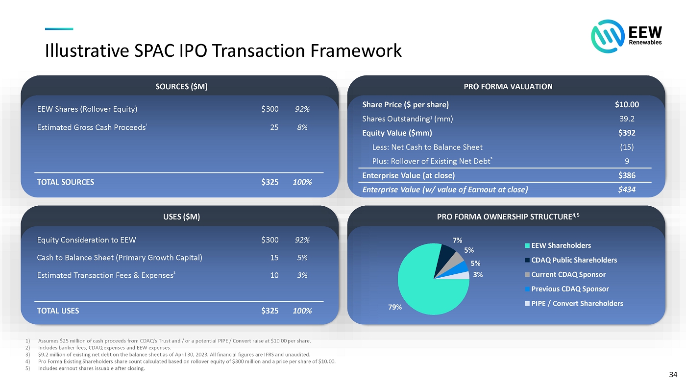 • EEW’s existing shareholders will convert 100% of their equity ownership into the combined company and are expected to own approximately 79% of the post-combination company upon consummation of the Proposed Business Combination.