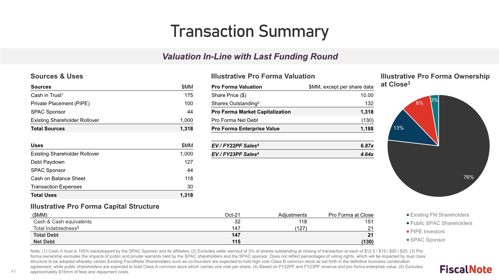 - Current FiscalNote equity holders will roll 100% of their equity interests into the combined company and will retain approximately 76% ownership.