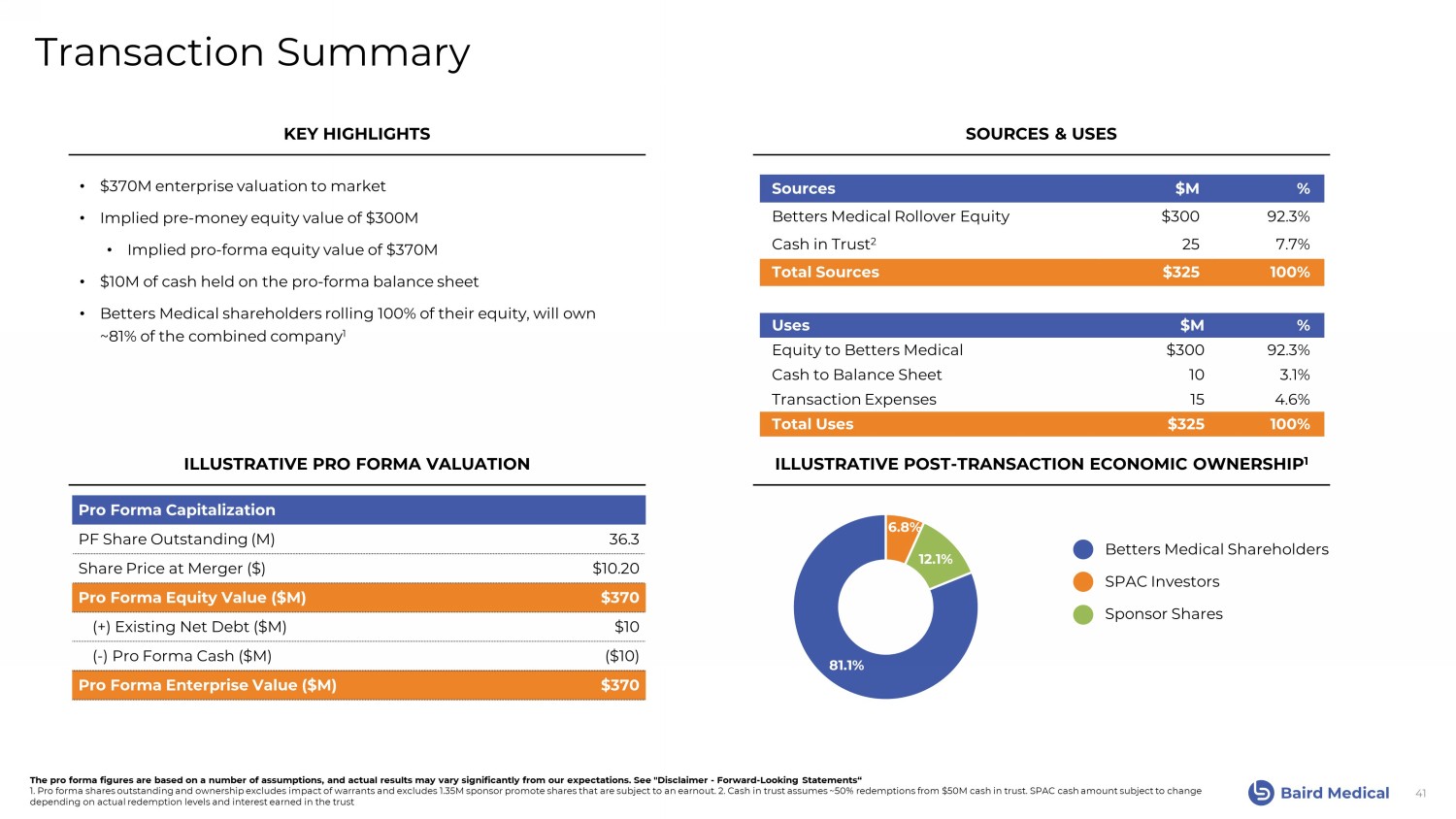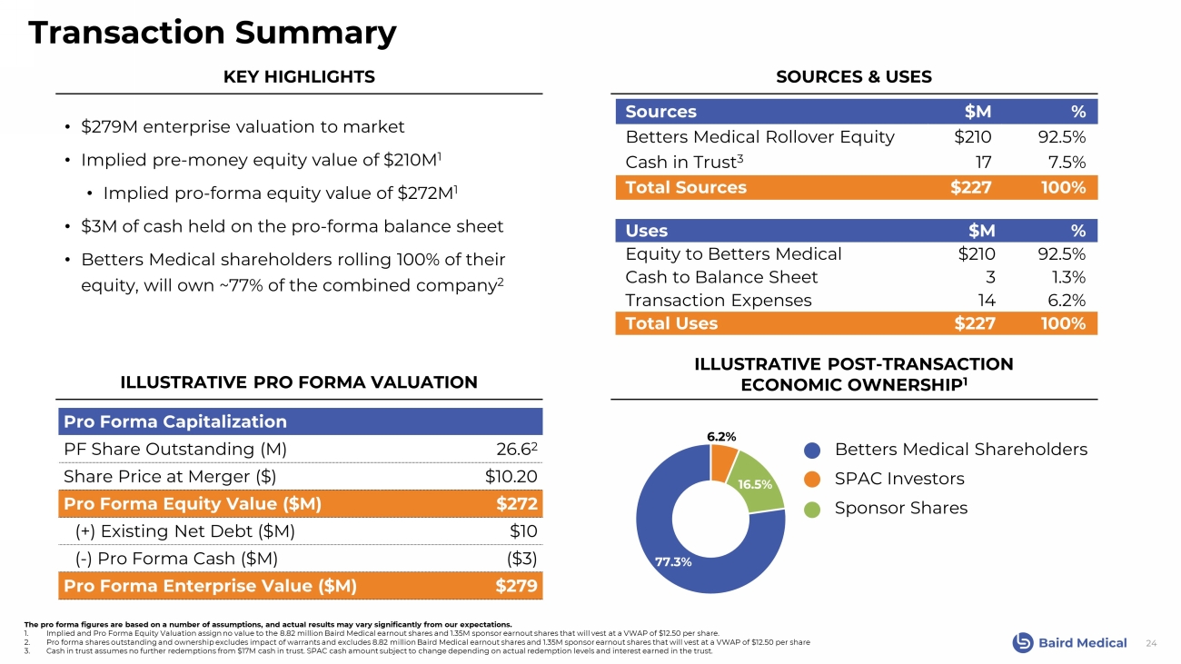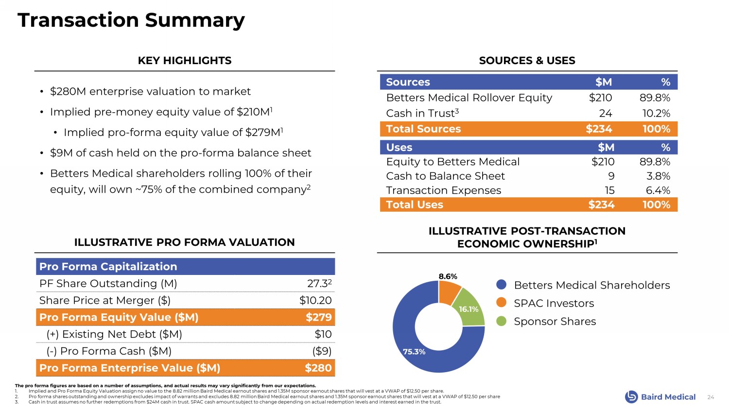 - Baird Medical agreed to subject 30% of its shares to be received in the transaction to an earnout.