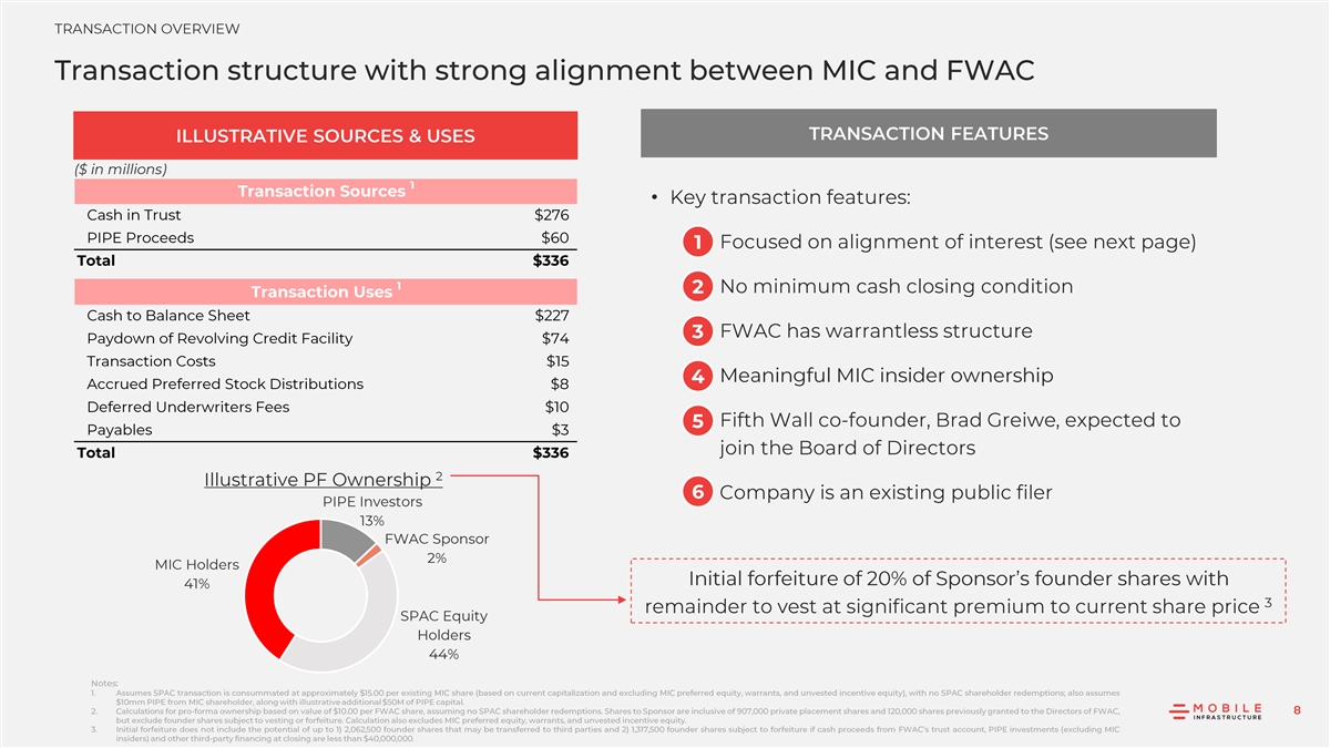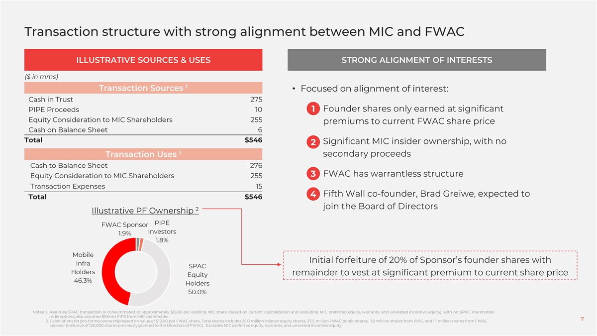 - MIC and FWAC are aligning long-term interests. FWAC’s sponsor has agreed to defer a portion of its founder shares in an earn-out with vesting at significant premiums to FWAC’s current share price, while MIC’s CEO has elected to receive 100% of his 2023 compensation in stock.