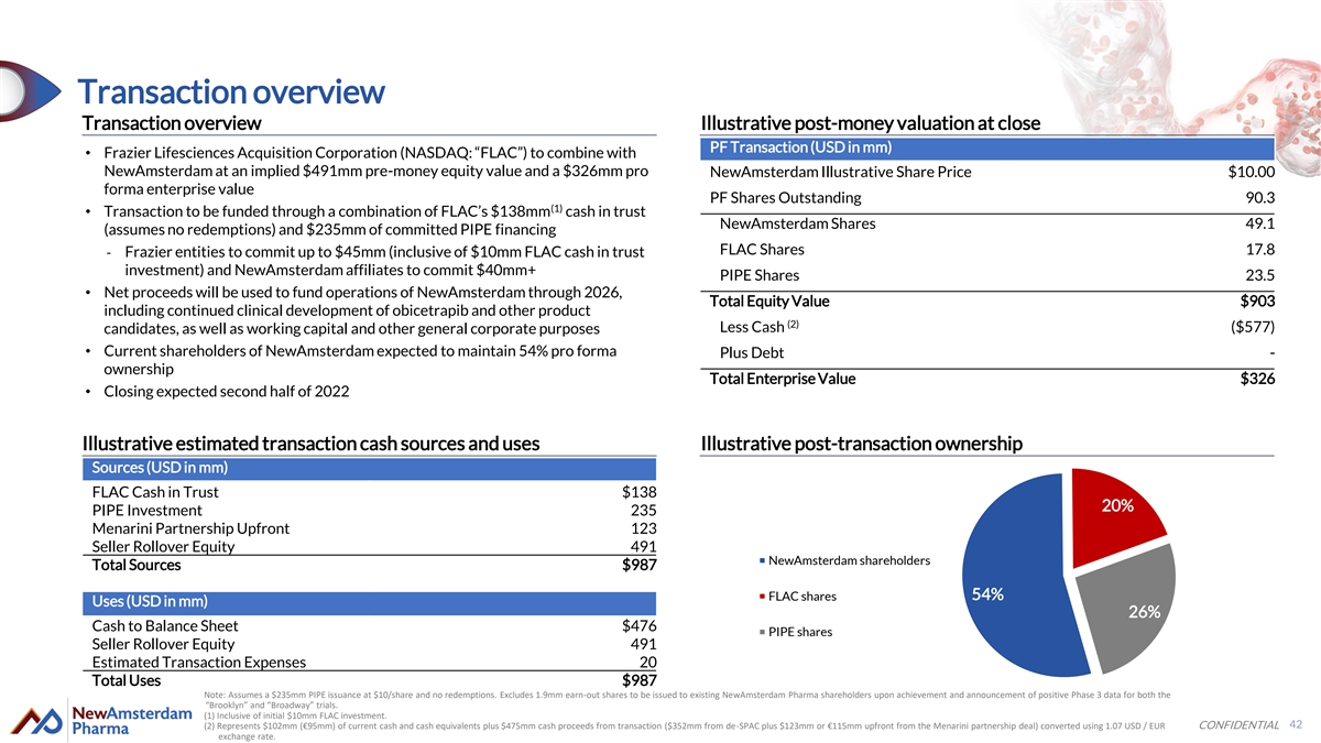 - The PIPE was co-led by Frazier Healthcare Partners and Bain Capital Life Sciences and includes new investors RA Capital Management, GMT Capital, Medicxi, Panacea Venture, and other institutional investors, in addition to existing NewAmsterdam shareholders Forbion, LSP Dementia Fund, and Morningside Ventures.