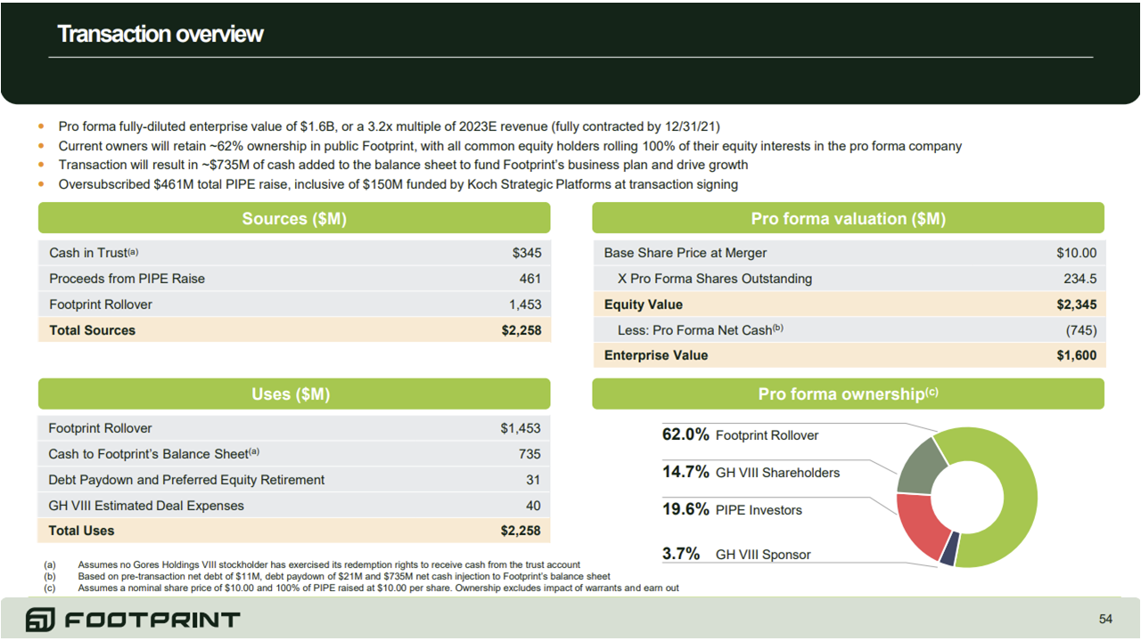 - The proposed business combination, which has been unanimously approved by both the Board of Directors of Gores Holdings VIII and the Board of Directors of Footprint, is expected to close in the first half of 2022, subject to approval by Gores Holdings VIII’s stockholders and other customary closing conditions.