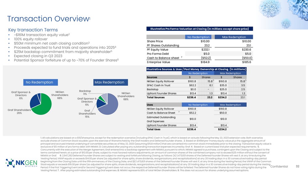 • Graf and NKGen will pursue new PIPE funding prior to the closing of the Business Combination.