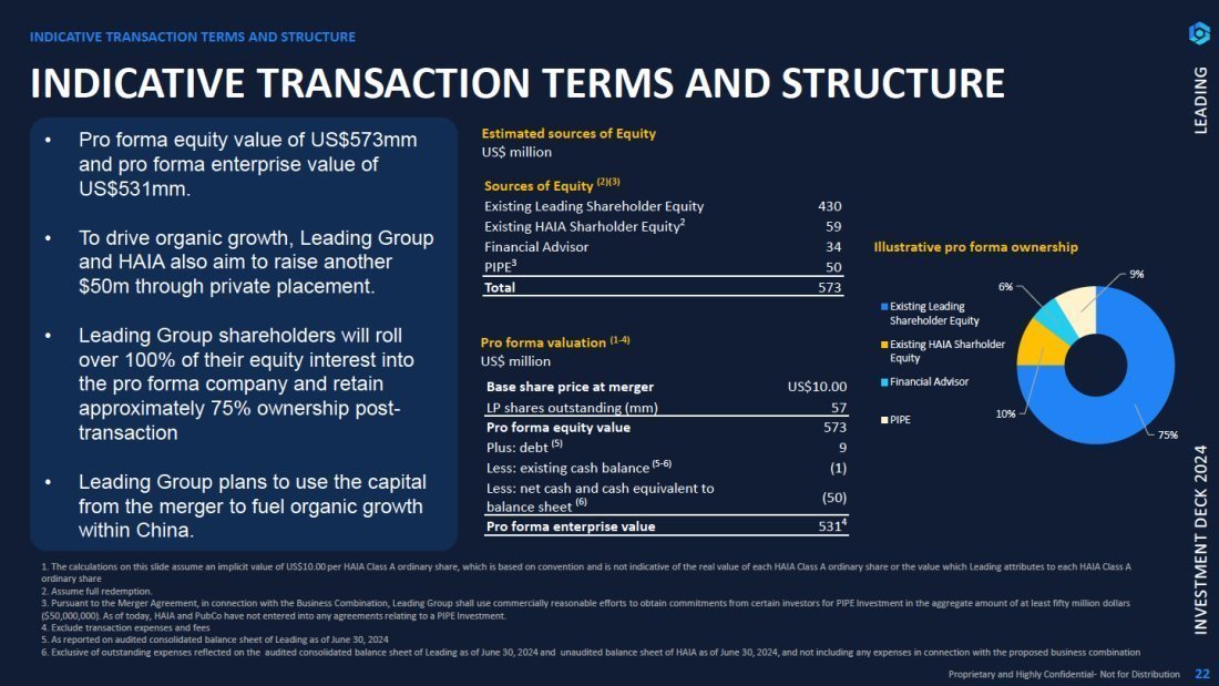 - The Proposed Transaction, which has been unanimously approved by the boards of directors of both LEADING and HAIA, is expected to be completed in the fourth quarter of 2024