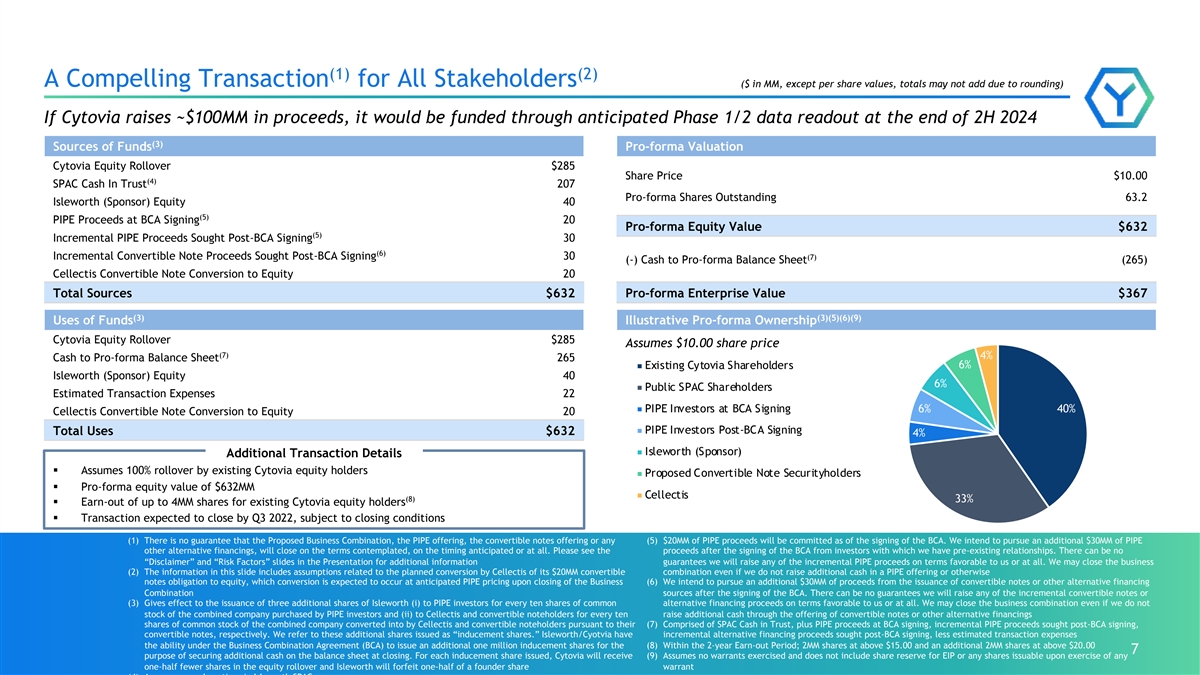 - Cytovia issued Cellectis a warrant to acquire a number of shares of Isleworth Common Stock equal to 0.35 multiplied by the number of Note Conversion Shares, at an exercise price of $11.50 per share, with each of the Warrant Exercise Shares and the Warrant Exercise Price subject to adjustment pursuant to the terms of the Cellectis SPA and the Convertible Note and Warrant issued thereunder.