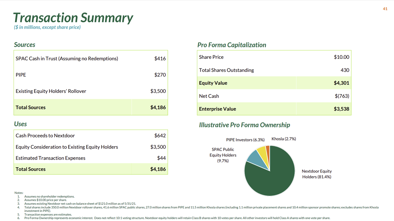 Nextdoor’s business combination with KVSB will provide access to new capital, which will be used to accelerate Nextdoor’s growth plans including hiring, expanding monetization, and continuing to develop products to build stronger, more vibrant, and resilient neighborhoods.