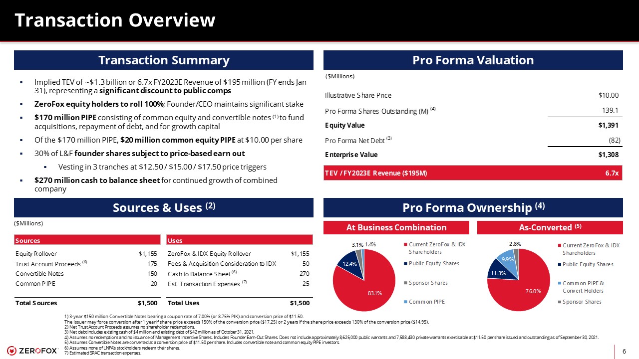 IDX is the nation’s leading provider of external breach response services, protecting enterprises from associated risks with its proprietary digital protection and privacy platform. Together, IDX and ZeroFox will provide external threat protection capabilities and breach response services, a holistic offering for companies protecting against, or responding to, an external cyberattack. The combined company will have over 650 employees and serve nearly 2,000 customers including five of the Fortune Top 10 and the largest companies in media, technology, retail and energy. Collectively, over 90% of revenues will be recurring platform subscriptions.