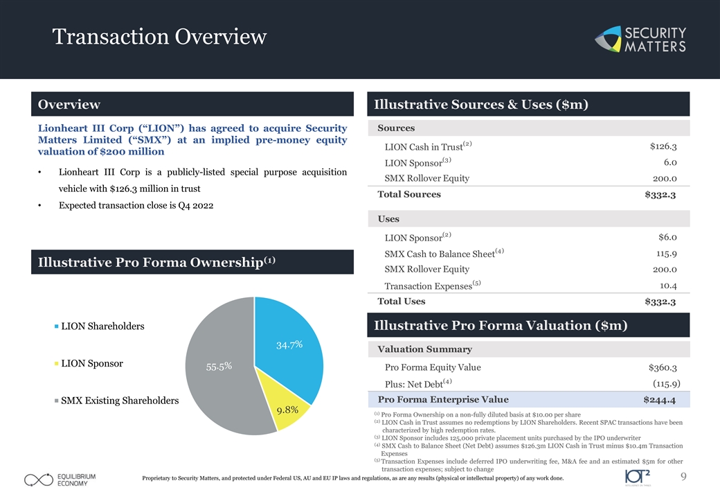 - The Transaction is anticipated to generate proceeds of up to approximately $116 million (US) cash, assuming no redemptions by Lionheart’s public stockholders.