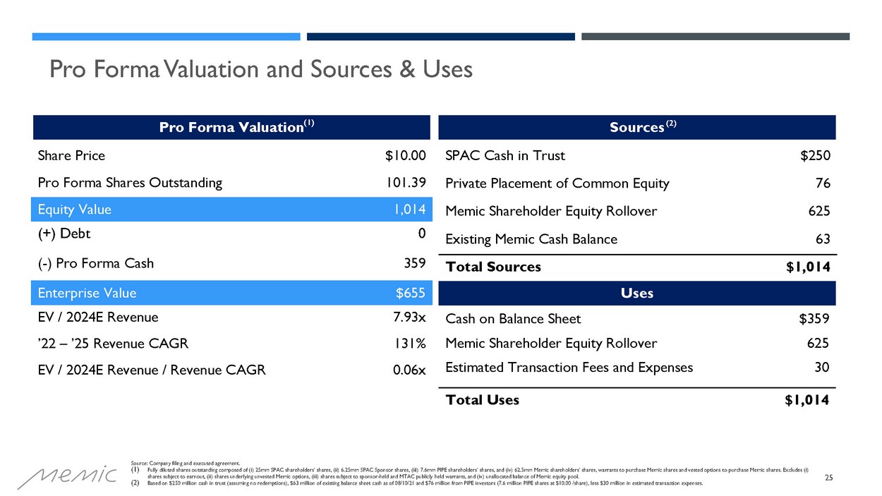 - The combined company’s estimated cash balance will consist of MedTech’s $250 million cash held in trust, assuming no redemptions by public stockholders, $76 million from the private placement of ordinary shares with investors (PIPE), and $63 million from the current balance sheet of Memic, less estimated transaction expenses and operational expenses through closing.