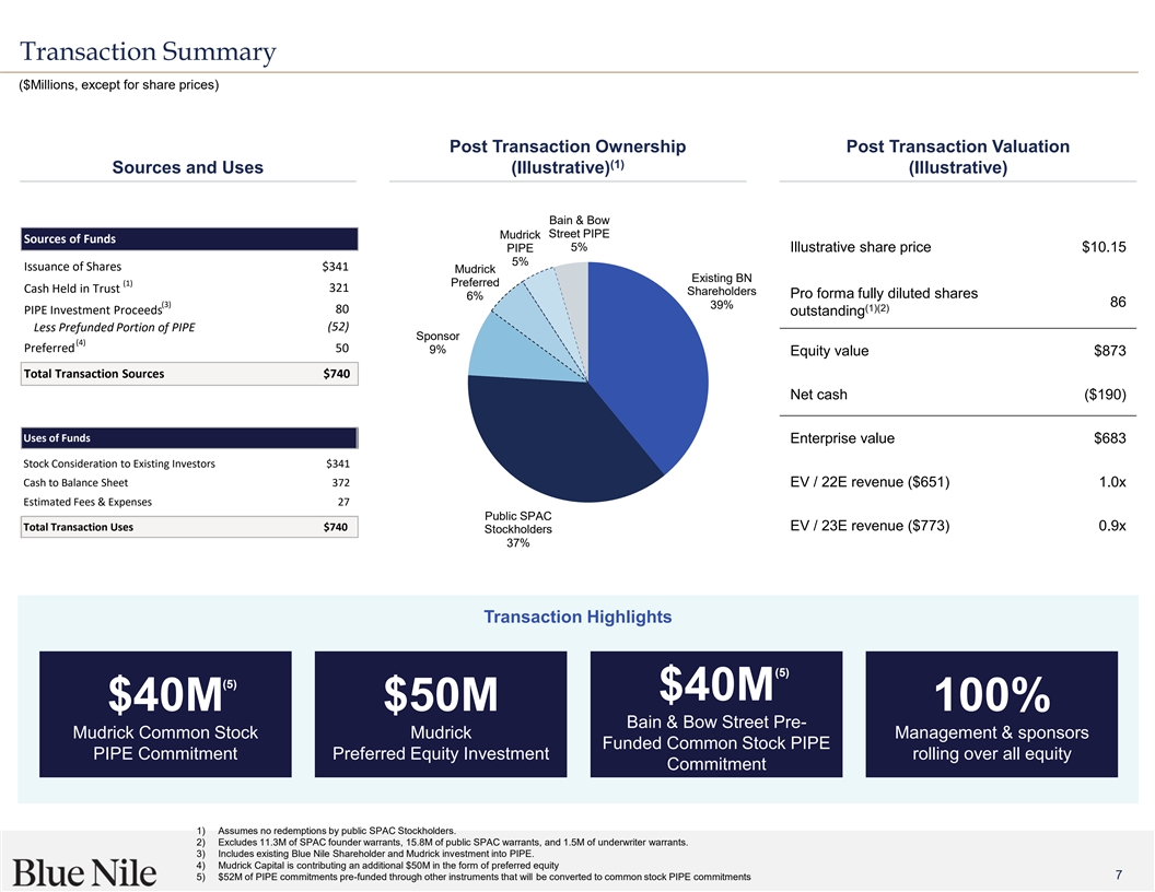 - Existing Blue Nile shareholders will roll over their existing equity, retaining 39% of the combined company’s pro forma equity.