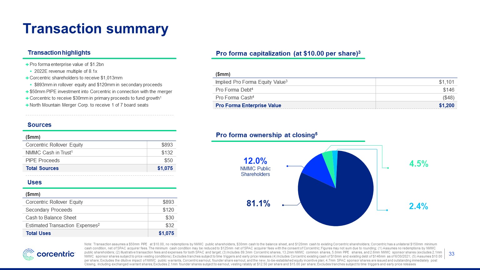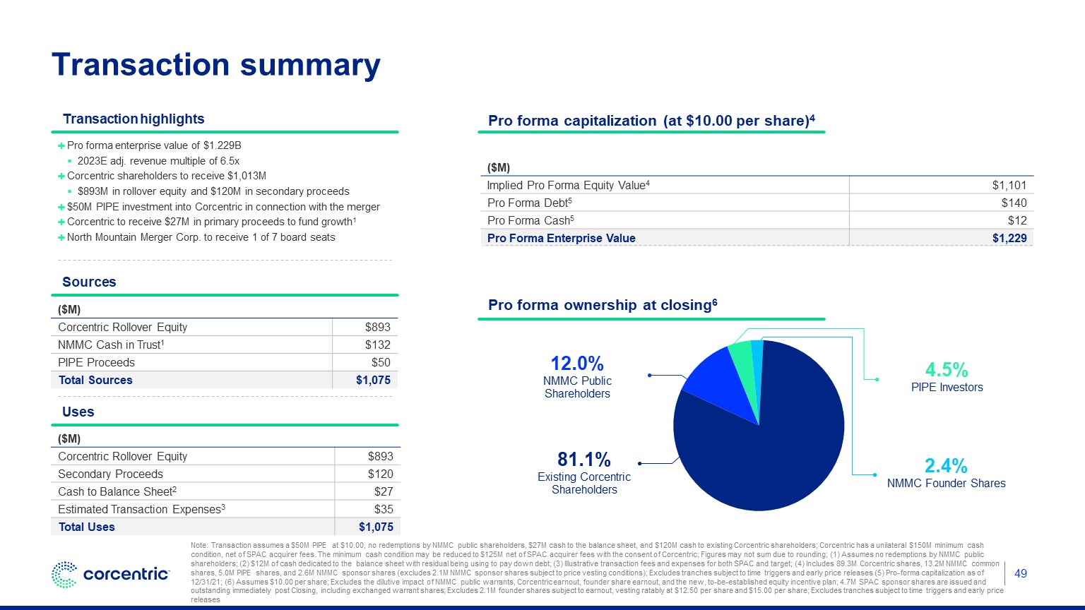 - Under the terms of the Transaction, Corcentric’s existing shareholders will convert their ownership stakes into equity of the combined company and are expected to own approximately 81% of the post-combination company immediately following the closing of the transaction.