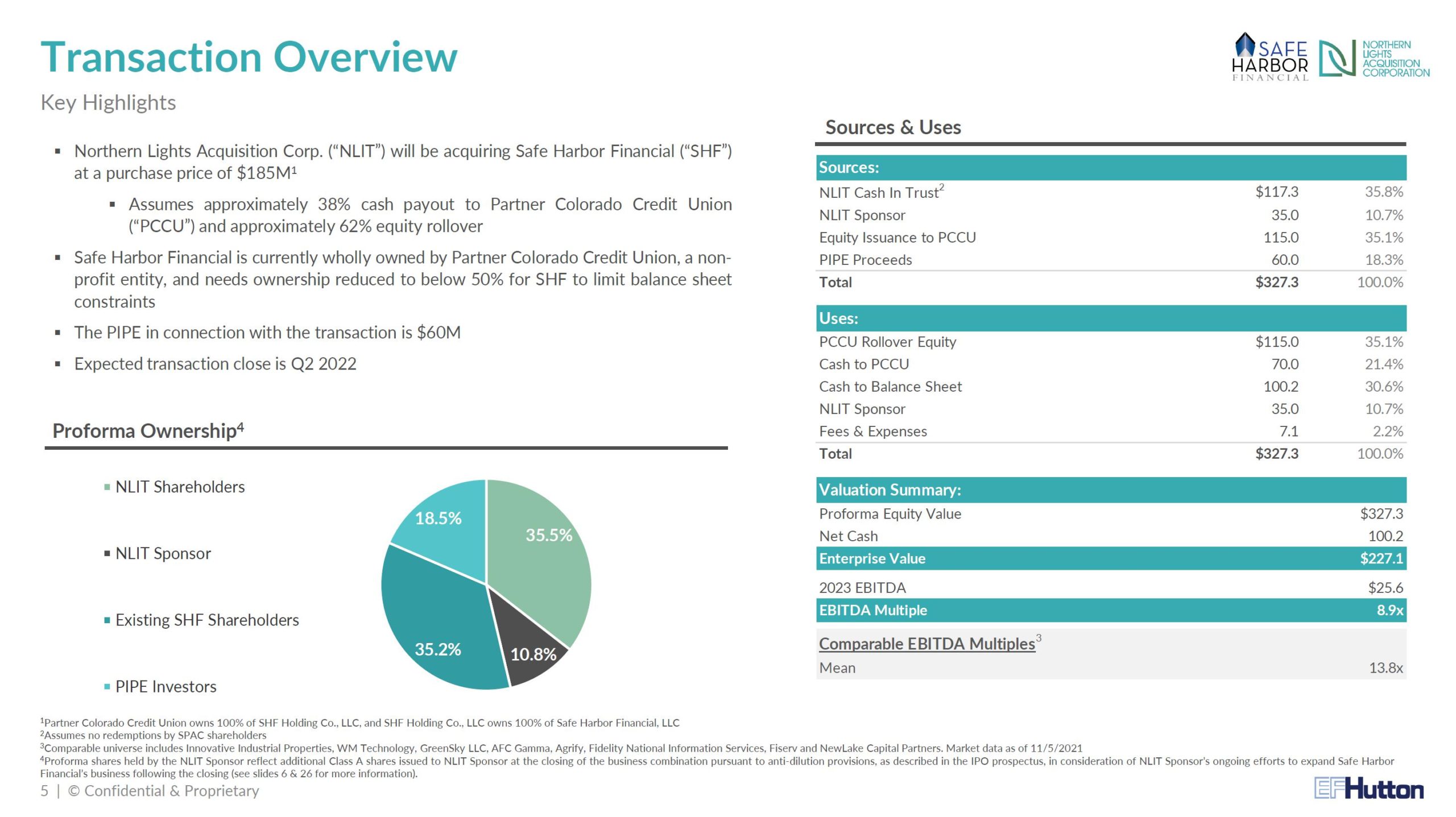 • The estimated post-transaction equity value of the Company will be approximately $327 million, assuming no redemptions by the stockholders of Northern Lights.