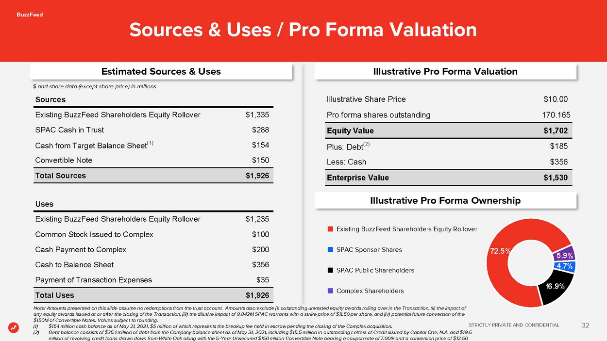 - Existing BuzzFeed shareholders are expected to receive 72.5% of the pro forma equity