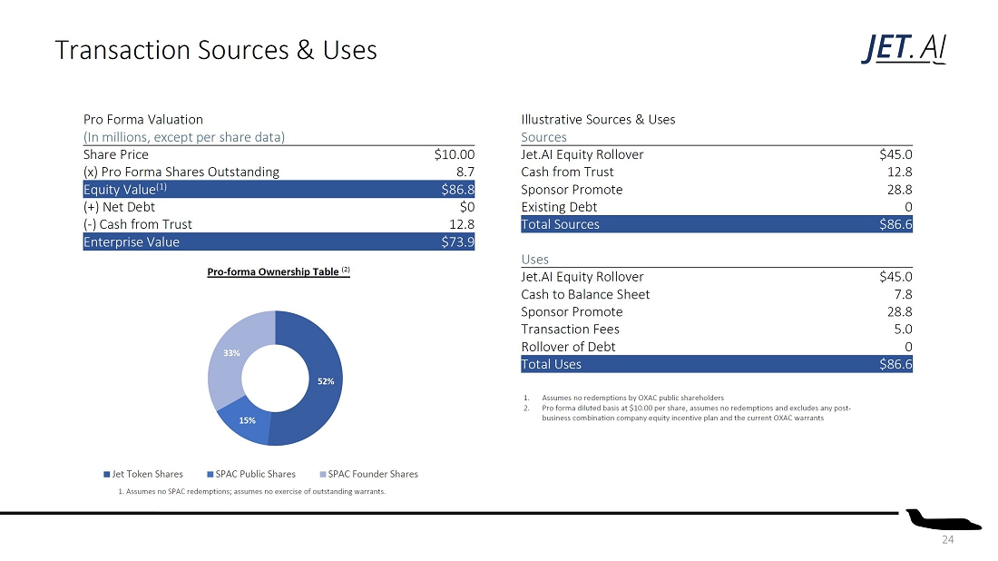 - The proposed business combination contemplates that Jet Token stockholders will roll 100% of their equity holdings into the combined company and will hold approximately 52.6% of the issued and outstanding shares of common stock of the combined company immediately following the consummation of the transaction, assuming no redemptions by Oxbridge’s existing shareholders.