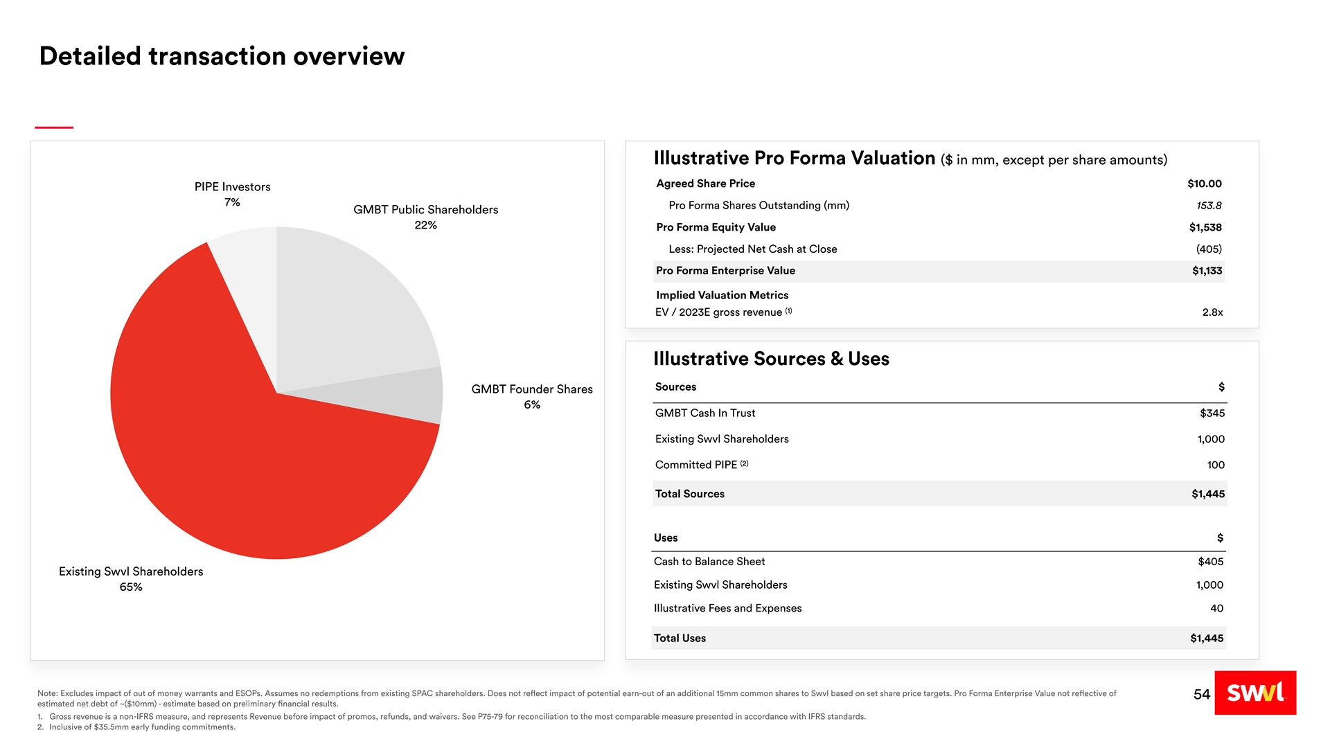 - The implied, fully diluted equity value of the combined company is approximately $1.5 billion, assuming minimal redemptions by Queen’s Gambit’s public shareholders, with existing Swvl shareholders expected to own approximately 65% of the combined company.