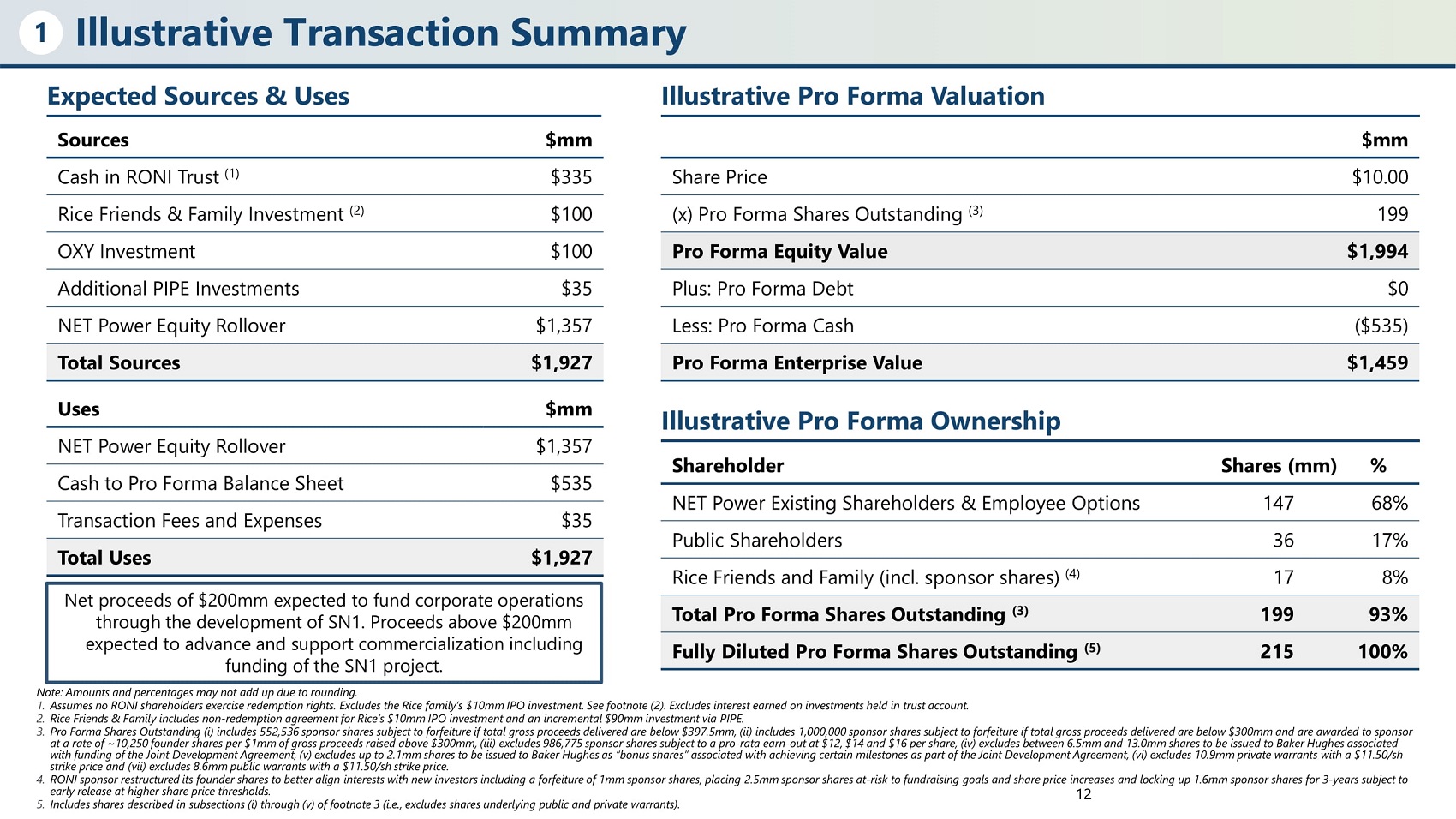 - Existing NET Power shareholders are rolling 100% of their equity into the combined Company and will own approximately 70% of the pro forma equity assuming no redemptions