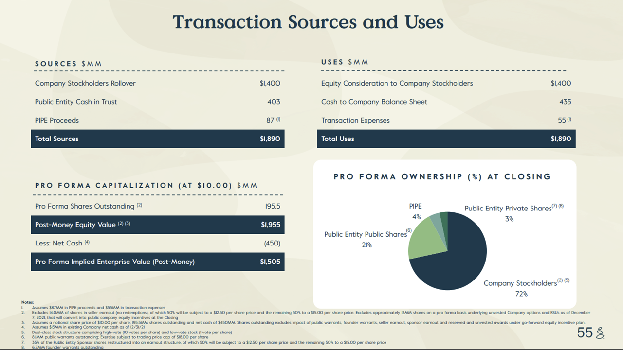 - The transaction will provide up to $435 million in net proceeds to the Company, including an $87 million fully committed common stock PIPE at $10.00 per share from: