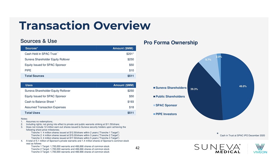 - If the share price equals or exceeds $12.50 for any 20/30 trading days, 50% of the shares will be released from lock-up